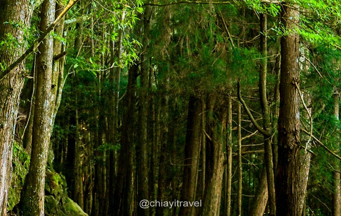 蔥蔥鬱鬱的森林,高聳柳杉岩古道兩旁屹立。