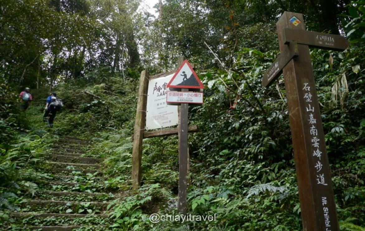 因位於嘉義、南投、雲林三縣交界故名「嘉南雲峰」。從南登山口起登,即進一片翠綠的孟宗竹林,隨著木棧階梯蜿蜒向上,一道陽光灑下,有如置身在武俠電影場景之中,十分優美。登至稜線休憩平台,樹林間可展望大塔山,續分左右兩線,先往左至嘉南雲峰,山頂樹林小空地中,矗立嘉南雲峰介紹牌,以及小小的圖根點。