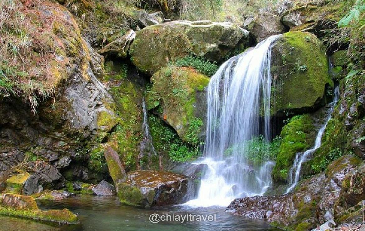 石山引水道的入口在台18線約99.5K處、「鹿林山野生動物棲息環境」木牌後方,前段是優美的人造柳杉林,途中可見尖聳的石水山如影隨形的出現在右方,冬天還有紅楓為山林憑添繽紛的色彩!經過崩塌地、隧道、矮橋墩和十多座水管鐵橋之後,抵達博博猶溪上游的水源地,鹿林前山瀑布即深藏在其中,千里迢迢來此尋幽的旅人不妨在溪瀑邊歇歇腳、享受片刻的清涼!原路回程重溫美景之餘,也可順登玉山林道上的石山,或是附近的特富野古道,在昔日的阿里山林鐵支線上徜徉一整天!